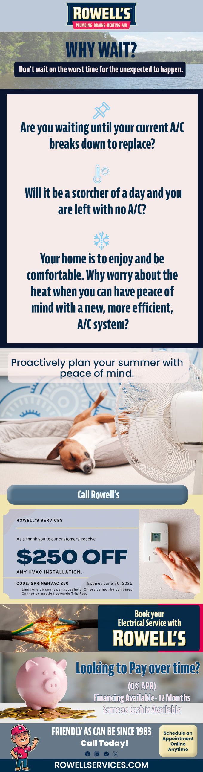 "Friendly As Can Be Since 1983!" When you need help with your plumbing, drains, heating, cooling or electrical in Merrimack, you can always rely on Rowell's Services! Call us now or book online!